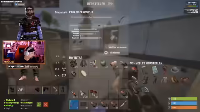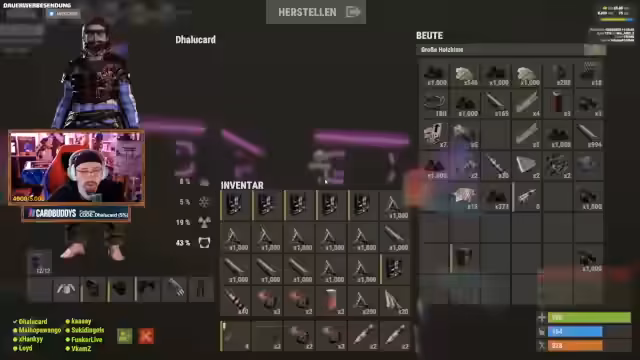 01:19:10Zu Beginn des Streamabschnitts wird die fehlende Notwendigkeit von Einlösecodes für Drops als Vorteil empfunden. Der Streamer plant Teamaktivitäten mit Kevin und Hux, muss aber feststellen, dass ein Heli nur Platz für eine Person bietet. Bei der Materialbeschaffung stoßen die Spieler auf Probleme: Helikopter stürzen ins Wasser, und das Recycling von Ressourcen führt zu Verwirrung und leeren Lagern. Das Team diskutiert über fehlendes Holz, Sulfur und Hochwertige Metallteile, wobei die Drop-Kisten schnell voll sind und zusätzlichen Platz benötigen.