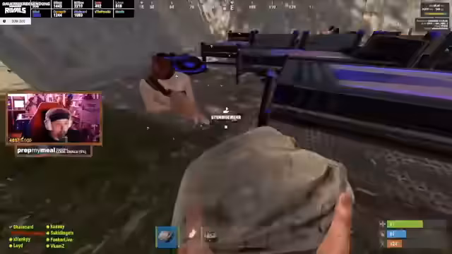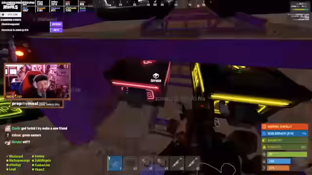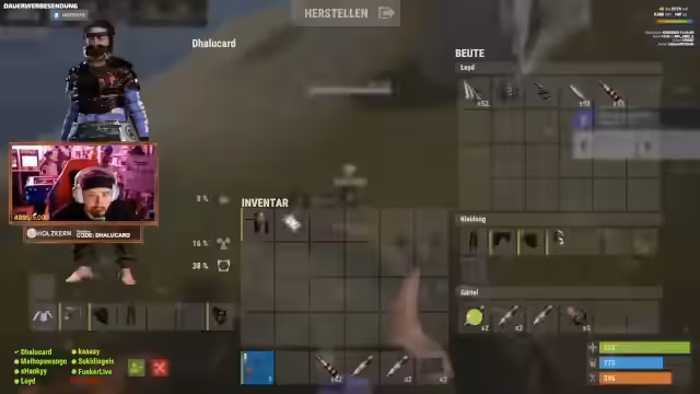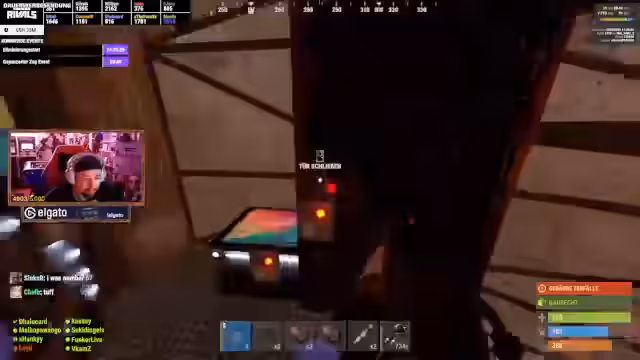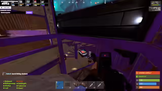 10:10:07Das Team von dhalucard verteidigt ihre Basis gegen mehrere Angreifer. Dabei wird diskutiert, ob der Tool Cupboard (TC) der Gegner tatsächlich zerstört wurde oder nicht. Intensive Gefechte entbrennen, während die Spieler versuchen, ihre Position zu halten. Es gibt Probleme mit niedrigen FPS, die das Kampfverhalten erschweren. Das Team koordiniert sich, um die gegnerischen Angriffe abzuwehren und gleichzeitig eigene Angriffe zu planen.