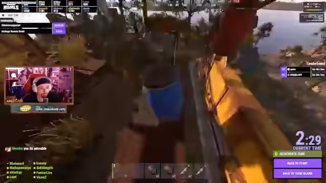 08:45:42Das Team braucht dringend mehr Rockets und sammelt sie von verschiedenen Orten. Ein Spieler warnt vor einem Angriff von Koko, der nun auf die Basis schießt. Es folgt eine hektische Phase, in der Boote von hinten angreifen und Tags verteilt werden. Das Team versucht, Fokus abzufangen, während sie in ihrer Raid-Base sind. Ein Problem mit der Platzierung von Gegenständen wird diskutiert, da ein Holzding in der Mitte dies verhindert.