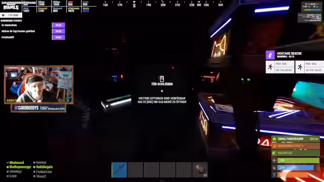 06:49:42Das Stream-Team diskutiert intensiv über die Teilnahme und geleistete Arbeit im Verlauf des Events. Ein Teammitglied wird kritisiert, da es nur an einem Tag früh anwesend war, während ein anderes Mitglied erklärt, es sei täglich zwölf Stunden aktiv gewesen. Es finden strategische Gespräche über den Handel von Ressourcen wie Logit für Waffen und Pipes statt. Ein Mitglied bietet zwei Reihen voller Logit an, um AKs und Pipes zu erhalten, was jedoch als zu wenig angesehen wird. Ein gemeinsames Vorgehen gegen ein anderes Team namens Reds wird geplant, bei dem diese zur Basis kommen sollen, anstatt das Team zu ihnen zu schicken.