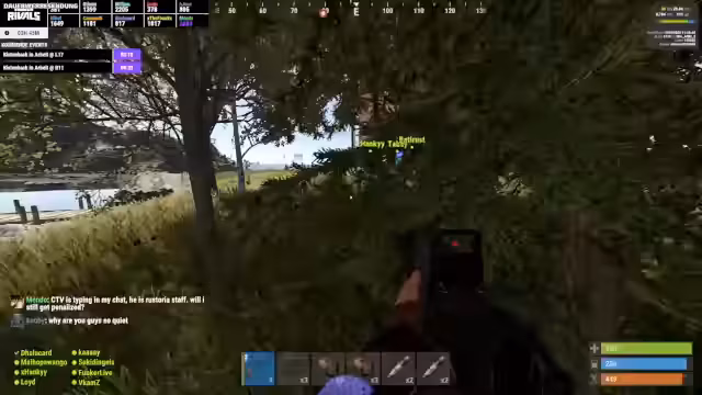 02:17:19Dhalucard berichtet von einem ungewöhnlichen PvP-Kampf, bei dem ein Gegner vom anderen Auto aus auf ihn schoss, aber aufhörte, als er das Auto zwischen ihnen bemerkte. Der Angreifer wurde nicht identifiziert, obwohl im Chat Verdächtige wie Niklas Key und Forti genannt wurden. Es gab Diskussionen über möglicherweise unerlaubte VOD-Nutzung und gelöschte Aufnahmen wegen potenzieller IP-Lecks.