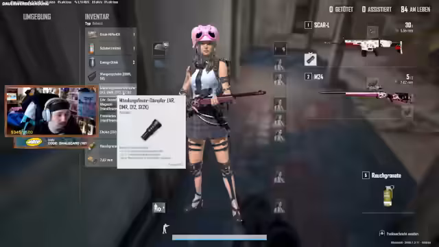 02:20:11Der Streamer diskutiert über Waffen in PUBG. Er lobt die M24, findet die MP5 gut, bezeichnet den Tennisballwerfer aber als 'Kackwaffe'. Ein Zuschauer erwähnt eine beeindruckende Runde von Haven mit 33 Kills und über 3600 Schaden, was dessen Skillniveau unterstreicht. Diese high-level Runde wird im Kontext des Matchmaking-Systems betrachtet, das solche Spieler eventuell leichtere Lobbys zuweisen könnte.