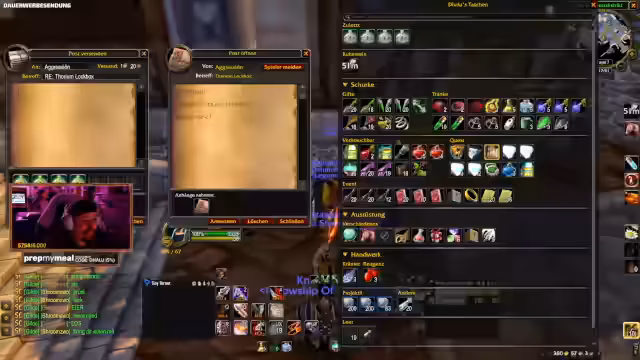 06:45:59Der Stream wendet sich einem humoristischen Thema zu: dem imaginären Kampf zwischen einem Maulwurf und einer Ente. Es werden Faktoren wie der Austragungsort, die Rüstung des Maulwurfs und der potenzielle Gruppenbuff der Ente durch Küken analysiert. Diese Diskussion dient als lockere Ablenkung und interaktives Element mit dem Chat. Parallel dazu wird eine Kleinheit im Spiel World of Warcraft angesprochen, die beim Versenden von Briefen mit Schließkassetten nerven kann, wenn keine Nachricht angehängt wird und der Absender somit unklar bleibt.