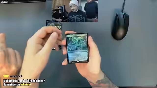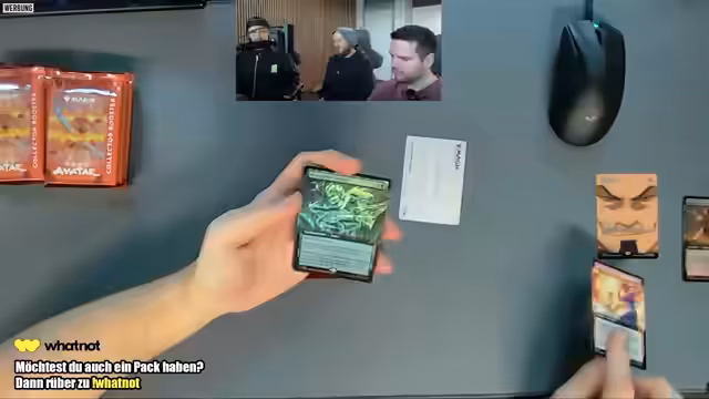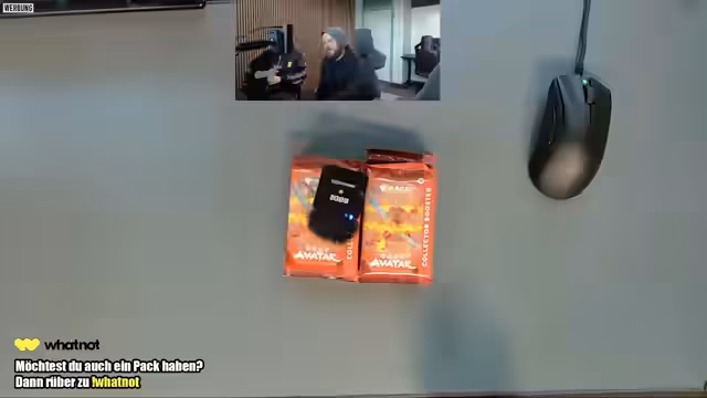 02:37:05Die Auktionsplattform WhatNot wird detailliert vorgestellt: Neukunden erhalten über einen Einladungslink 15 Euro Startguthaben, das für z.B. 5 japanische Pokémon-Booster (Versand 2,20 Euro) genutzt werden kann. Giveaways laufen parallel auf Twitch und WhatNot, wobei Pokemon-Booster verlost werden. Die Streamer betonen, dass Gebote bei Auktionen nicht künstlich hochgetrieben werden sollen. Es folgt das Öffnen weiterer Booster-Packungen, darunter Magic-The-Avatar-Booster und One Piece, mit durchwachsenen Pull-Rates.