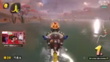 00:02:01Der Stream beginnt mit einem Check einer Webseite, die Live-Anzeigen zeigen soll. Im Fokus steht jedoch hauptsächlich das aktuelle Gameplay von Mario Kart World. Der Streamer versucht, einen Knockout Grand Prix zu gewinnen, was aufgrund von hohem RNG, insbesondere der blauen Panzer, als sehr anstrengend und knapp beschrieben wird. Es wird die Problematik angesprochen, dass das Zurückspulen im Rennen zwar hilft, aber die anderen Spieler dennoch aufholen lässt, was die Strategie erschwert.