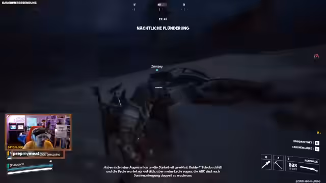 06:08:17Die finale Runde gestaltet sich chaotisch, als das Team von einer Bastion bedroht wird und sich in einem unübersichtlichen Gelände verirrt. Trotz der widrigen Umstände werden mehrere Gegner ausgeschaltet und wertvoller Loot gesichert. Der Stream endet mit einem Resümee der koordinierten Aktionen, einem letzten Plünderungsversuch und der Planung weiterer Events wie des Bunker-Events, um die Quests erfolgreich abzuschließen.