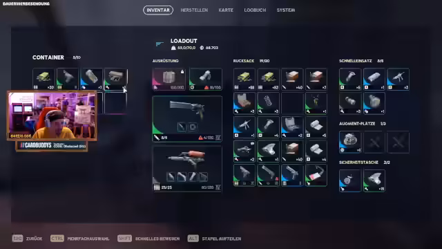 03:27:28Ein zentrales Problem ist der Mangel an Lagerplatz. Das Inventar ist voll, was die Herstellung von benötigten Gegenständen wie Sprungfedern erschwert, die für das Craften von Waffenteilen essentiell sind. Der Streamer rät, primär mit Gratis-Loadout in Runden zu gehen, da das voll ausgerüstete Equipment sofort zum Tod führt. Die strategische Entscheidung, Waffen nur bis auf Rang 3 zu upgraden, wird getroffen, da die Reparaturkosten für höhere Ränge prohibitiv hoch sind. Das Recyclieren von Gegenständen wie berosteten Werkzeugen ist eine wichtige Quelle für Materialien wie Sprungfedern.