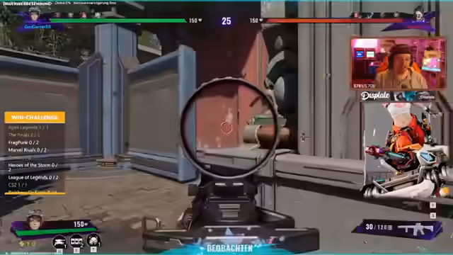 01:28:25Nach intensiven Kämpfen und einem strategischen Einsatz von Turmen und Granaten gelingt es dem Team schließlich, eine Runde zu gewinnen und den ersten Punkt zu sichern. Der Streamer lobt seine Mitspieler und seinen eigenen hohen Damage-Ausstoß. Anschließend wird über zukünftige Challenges gesprochen, unter anderem über gesponserte Spiele und die Bedenken bezüglich der fehlenden Teilnahme von Freddy, was die Challengezeiten beeinflussen könnte.