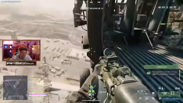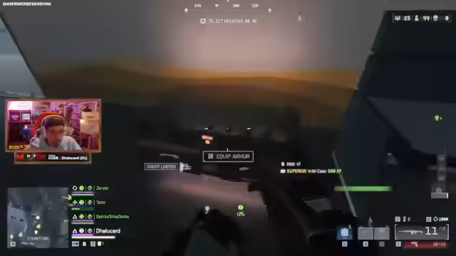09:47:40Zu Beginn des Battlefield 6 Battle Royale-Teils ist der Streamer begeistert von seinen Fähigkeiten als Helikopterpilot, kritisiert aber gleichzeitig die im Spiel aktivierte Steuerungshilfe, die das Fliegen zu einfach und den Kampf zu wertlos macht. Während des ersten Landeplatzes, dem Leuchtturm, werden bereits 31 Kills verzeichnet und es wird das Potential für zukünftige Runden mit der gesamten Gruppe angedeutet.