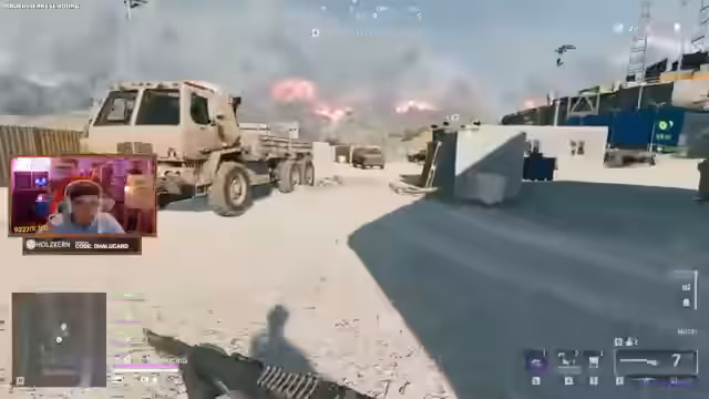 07:07:56Das Stream-Team ist in einen heftigen Kampf um einen Panzer verwickelt. Es herrscht große Verwirrung über die Positionen der Gegner und der eigenen Teammitglieder. Nachdem der Panzer in Flammen aufgeht, versuchen die Spieler, sich in Deckung zu begeben und ihren verletzten Kameraden zu helfen. Diskussionen über fehlende Munition, funktionierende Waffen und eine neue aus dem Battle Pass stammende Sniper, die als nicht sonderlich gut bewertet wird, prägen das Geschehen. Die Aktionen sind schnell und unkoordiniert, was zu mehreren Toden führt und das Ziel, den Panzer zu sichern, zunächst verfehlt wird.