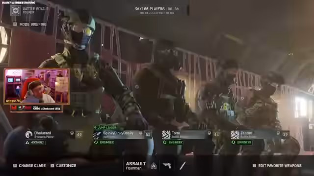 04:02:35Die ersten Runden im Battle-Royale-Modus gestalten sich intensiv. Der Streamer und sein Squad landen an strategisch wichtigen Orten und sammeln sofort Ausrüstung und Platten. Er stellt fest, dass das Gameplay stark an Warzone erinnert, insbesondere durch Elemente wie Waffen-Upgrades, Missionen im Spiel und das 'Survive the Wall of Death'-Prinzip. Das Gameplay wird als actionreich und herausfordernd beschrieben, das Squad kämpft gegen mehrere Gegnerner und versucht, in der sich verkleinernden Zone zu überleben. Dabei kommen auch Fahrzeuge und spezielle Airstrikes zum Einsatz, was die taktischen Optionen erweitert.