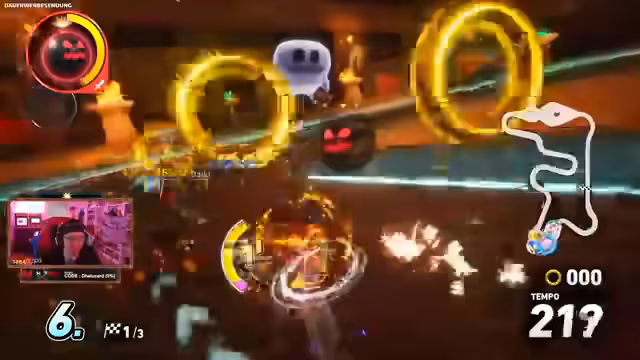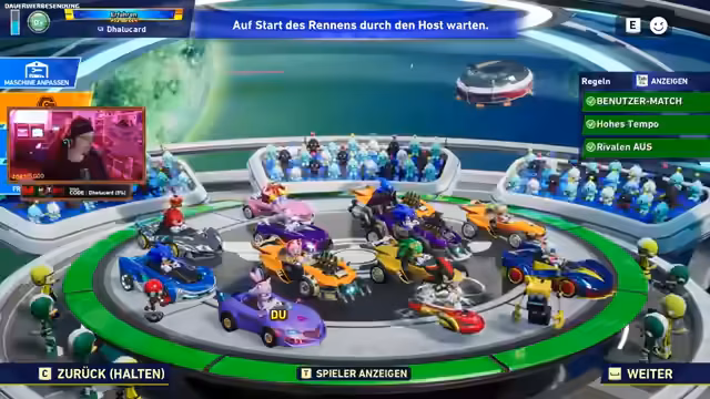 06:17:37Im Rennen gibt es mehrere Zwischenfälle wie Bombenexplosionen und Item-Angriffe, die Positionen verändern. Der Streamer wird von einem Monster Truck überfahren und klettert später im Ranking. Es werden schnellere Charakteren wie Shadow als Teil der Meta identifiziert. Ein spontaner Charakterwechsel auf Speed wird vorgenommen, um wettbewerbsfähig zu bleiben.