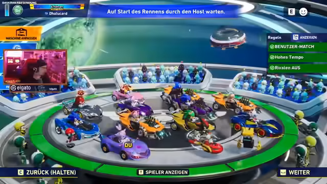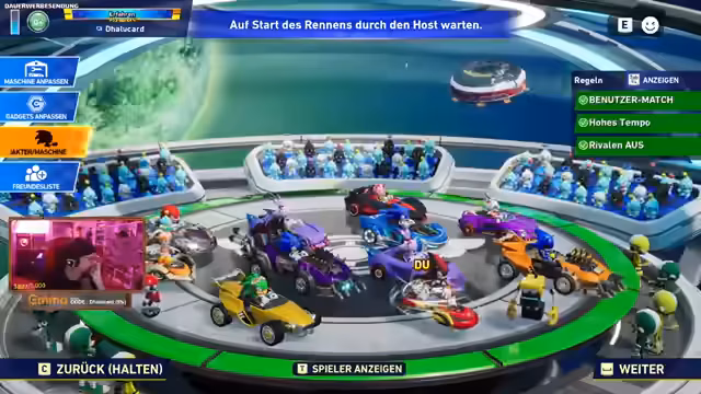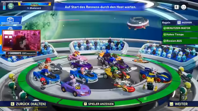 05:18:03Der Streamer wechselt zu Sonic Racing, einem Mario-Kart-ähnlichen Spiel mit Sonic-Charakteren für den PC. Er ist mit Ranzi, Compt und Lost in einer Lobby. Er plant, Star Resonance und Ghost of Tsushima zu spielen, auch wenn die genauen Termine noch unklar sind. Es gibt Diskussionen über erlaubte Charaktere und Fahrzeuge, wobei DLC-Inhalte ausgeschlossen sind.