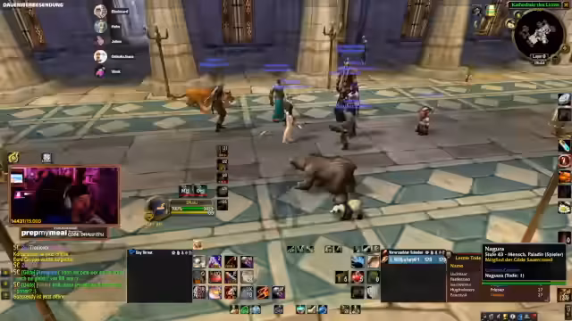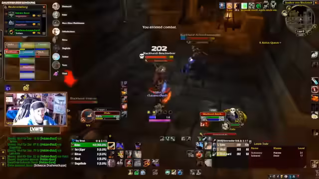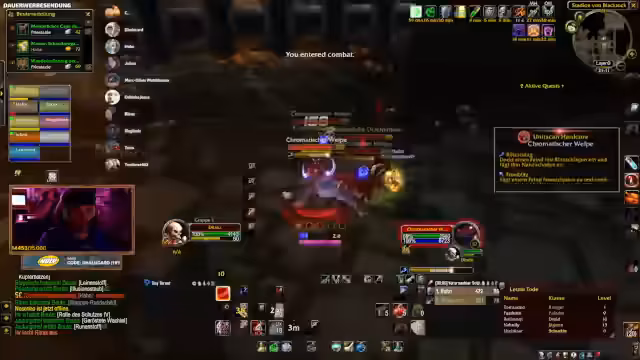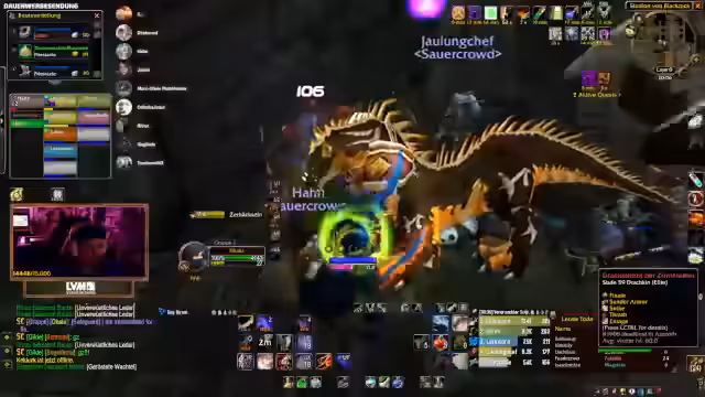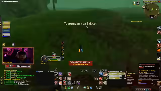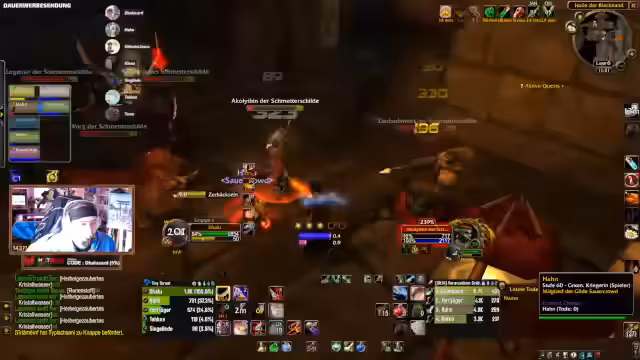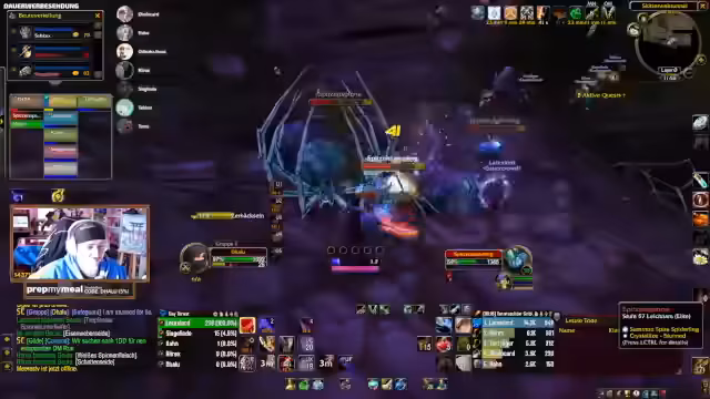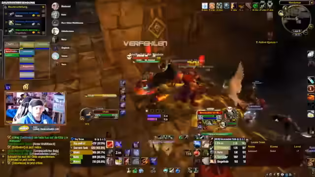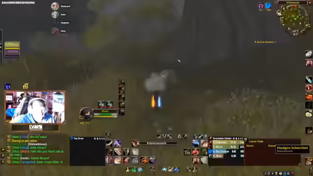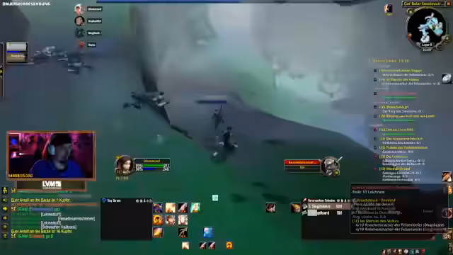 04:01:40Während des Dungeon-Runs in der Instanz kommt es zu einem kritischen Moment, als die Gruppe einen Skip versucht, um Zeit zu sparen. Der Plan, von einer Höhe zu springen und direkt zum Boss zu gelangen, scheitert durch einen Fehlzug, der mehrere Mobs anzieht und zur Panik führt. Die Kommunikation bricht kurzzeitig zusammen, und die Teilnehmer müssen improvisieren, um aus der gefährlichen Situation zu entkommen, was jedoch nicht vollständig gelingt.