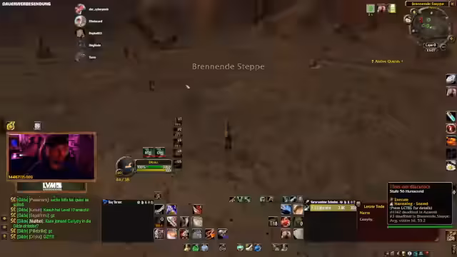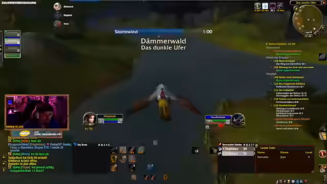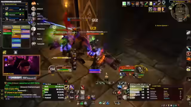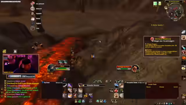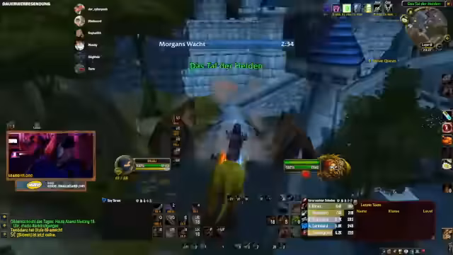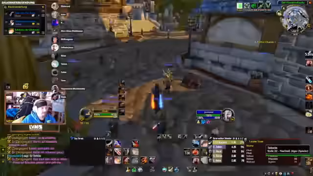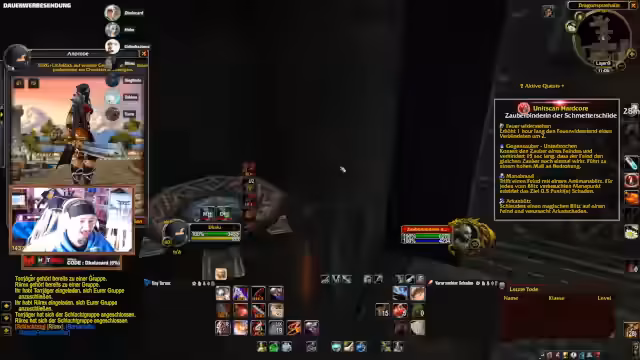 09:01:19Die Teilnahme an Community-Events wird gefördert, mit einem Hinweis auf einen Quiz-Abend. Discord-Übertragungen für Gruppenspiele werden angeboten, mit der Möglichkeit für bis zu 10 Teilnehmer. Es folgen Lobeshymnen für Toro, der seinen Charakter hart erkämpft hat. Planungen für zukünftige Dungeons wie Deadmines werden getroffen, mit Hinweisen auf Offline-Zeiten von Spielern. Die Stimmung wird als motiviert beschrieben, mit Fokus auf gemeinsame Zeit am Computer.