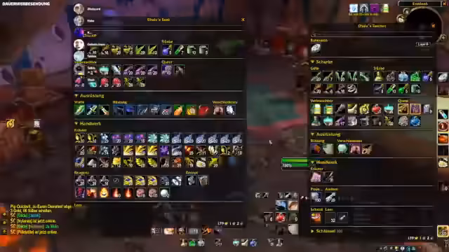 02:48:40Dalu und Toro berichten über den erfolgreichen Loot einer Brustplatte in Scholo, die als extrem selten eingestuft wird, und diskutieren die Vor- und Nachteile des Set-Bonus. Crafting wird intensiv besprochen: Petris werden farmen, das Auktionshaus wird für eine Woche freigeschaltet, und es gibt Updates zu Frostöl, die nicht mehr für Quests verfügbar sind. Die Gilde plant, Gold durch den Verkauf von Gegenständen zu generieren, und diskutiert, ob Teufelsstoffe verkauft oder für Enchanting verwendet werden sollten.
