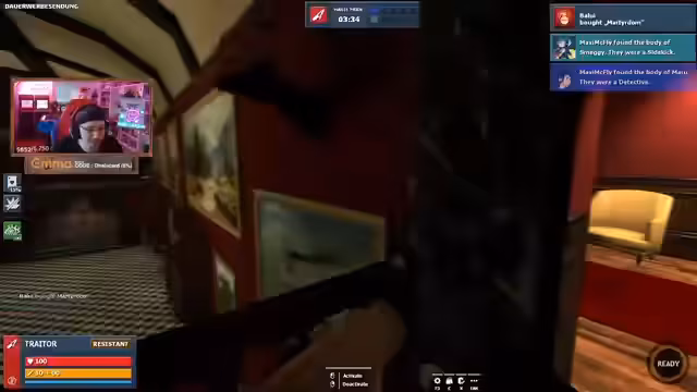 02:15:29Die Streamer wechseln zu einem anderen Spiel, in dem es um Verrat und strategische Ermittlungen geht. Es kommt zu zahlreichen Todesfällen, verdächtigen Situationen und chaotischen Szenen. Gleichzeitig sprechen sie über die bevorstehende Gamescom und die dortigen Pläne, einschließlich eines Auftritts auf einer Bühne und eines geheimen Duetts.