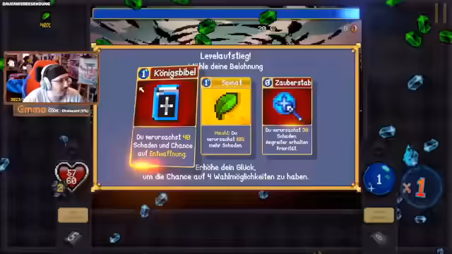 00:20:00Nachdem der Streamer die ersten Kämpfe bewältigt hat, erhält er Belohnungen wie zusätzliche Erfahrungspunkte (XP) und verbesserte Gegenstände, die er für zukünftige Runden nutzen kann. Er erkundet neue Charaktere und deren Fähigkeiten, während er gleichzeitig versucht, seine Strategien zu optimieren. Der Streamer macht sich Gedanken über die bevorstehenden Bosskämpfe und bereitet sich auf neue Herausforderungen vor, wie z.B. das Entdecken verborgener Gegenstände und das Anwenden spezifischer Builds, die ihm im Spiel helfen sollen.
