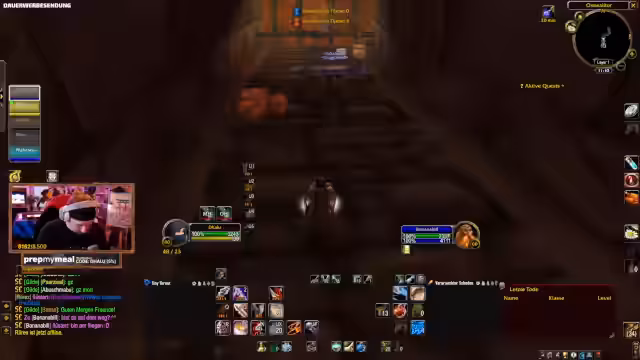 08:03:52Der Streamer analysiert die Stärken und Schwächen der Gruppe für den folgenden Dungeonabschnitt. Er weist auf die verschiedenen Mob-Typen hin und priorisiert die Ziele für jeden Spieler, so z.B. Reanimierte Kadaver für Röki und kleine Skelette für Sanctitas. Er lobt die Zusammenarbeit und vergleicht seine aktuelle positiver Spielerfahrung mit anderen Tank-Spieler.