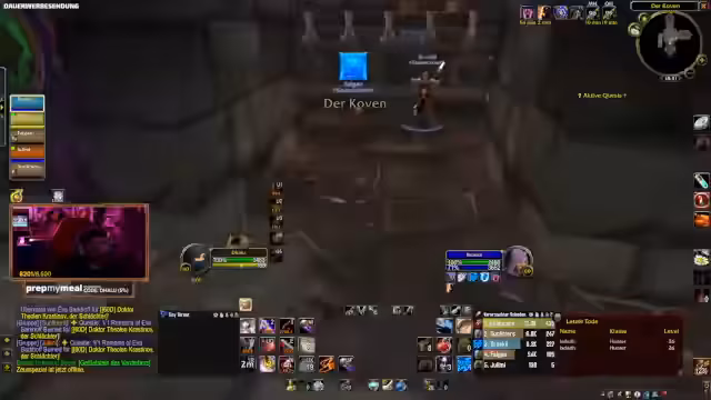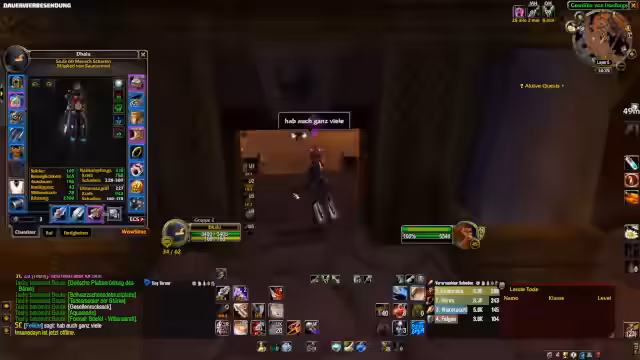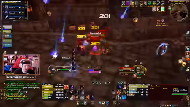 02:56:33Der Stream zeigt ein dynamisches Gameplay mit gefährlichen Situationen und einem erfolgreichen Loot-Moment. Nach einem riskanten Run in UBRS dropt der Friedensstifter, was die Moral hebt. Während des Runs in Stratholme kommt es zu einem 'Close Call', bei dem ein Verlust nur knapp vermieden wird. Nach langem Grind droppt endlich die lang ersehnte Stalus-Hose, was von großer Freude im Stream begleitet wird. Der Streamer dankt den Zuschauern für ihre Unterstützung.