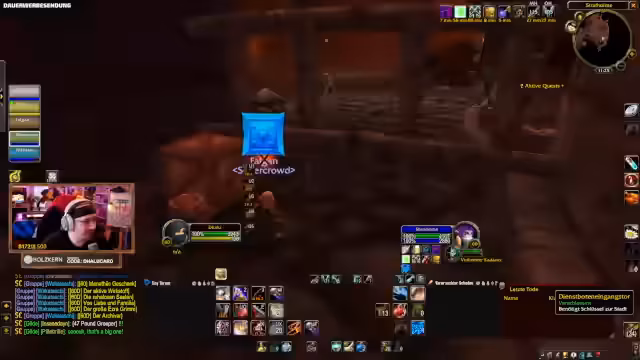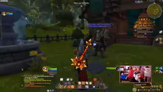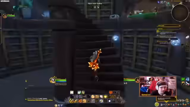 03:12:45Es wird eine neue Perspektive durch einen Zuschauer eingebracht, der zum ersten Mal mit 'Sauerkraut' spielt. Es entwickelt sich eine Diskussion über die deutsche Synchronisation von WoW. Es wird NPC wie Bartholomeo der Schlechtere und Arthas als Beispiele für gelungene Synchronisation genannt. Der Streamer bietet an, Zuschauerhäuser im neuen WoW-Housing-Feature zu besichtigen und fordert die Community auf, ihre Kreationen zu präsentieren.