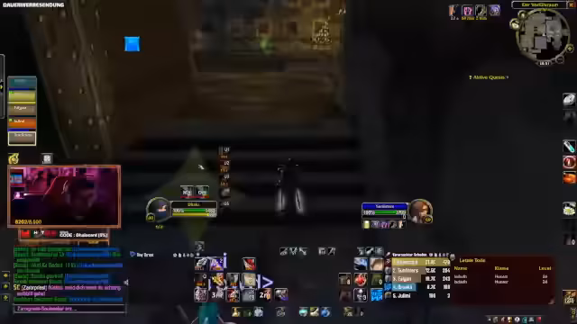 07:54:22Es findet eine Diskussion über den Loot-Table in aktuellen Instanzen statt. Der Streamer erklärt, dass durch die Einführung von Dunkelruhen die Drop-Rate von Gegenständen reduziert wurde, was das Farmen erschwert. Er berichtet über einen gefürchteten Bossmechanismus, bei dem ein zufälliges Ziel in den Raum portiert wird, und warnt vor den Gefahren, die von den dortigen Mobs ausgehen.