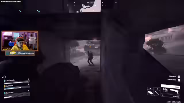 09:15:13Der Streamer erkundet bekannte Loot-Spots wie den Krankenhaus-Spintraum und versucht, mit gratis Runs diese schnell abzuarbeiten. Ein gezielter Angriff auf einen Spintraum wird ins Auge gefasst, da dieser Rangpunkte bringt. Parallel wird die Position des Spawns analysiert und die Option geprüft, wieder am Bahnhof oder im Krankenhaus zu spawnen, um einen schnellen Vorteil zu erlangen. Eine Hit-and-Run-Taktik wird verfolgt, um Loot zu sichern und sich schnell wieder zurückzuziehen.