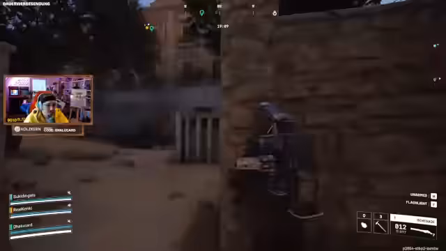 07:54:01Ein kampfbetontes Szenario entsteht, als Gegner versuchen, einen gefallenen Mitspieler auszurauben. Die Streamer unterbrechen den Versuch und eliminieren die Gegner. Dabei wird jedoch einer der Streamer selbst eliminiert, wodurch seine Ausrüstung verloren geht. Der Verlust von guter Munition und wertvollen Waffen wird bedauert, was den Druck verdeutlicht, während eines Kampfes den Überblick zu behalten.