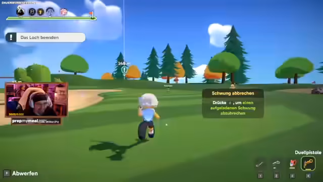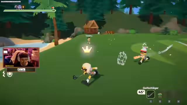 06:21:42Der Streamer streamt mit einer Gruppe von Freunden, darunter Katz, Asics und Juli. Die Kommunikation und das Spiel sind durch technische Schwierigkeiten und Missverständnisse geprägt. Die Steuerung per Maus und Winkelanpassung wird als komplex beschrieben. Das Gameplay ist sehr aggressiv und defensiv, da Spieler ihre Bälle schützen, während sie versuchen, die Bälle anderer vom Zielloch fernzuhalten. Das Ziel ist es, mit den wenigsten Schlägen und schnellsten Zeit ins Loch zu gelangen.