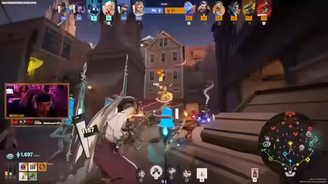 10:29:13Der Stream ist geprägt von intensiven und oft unkoordinierten Teamkämpfen in einem Heldenkampfspiel. Der Kommentator kommentiert das Geschehen live, beschreibt ständige Positionswechsel, schwierige Fähigkeitsausführungen wie das Stunnen von Gegnern und das Management von Cooldowns. Die Kommunikation des Teams scheint nicht immer synchron, was zu Fehlern und verpassten Chancen führt, während er selbst versucht, durch Buffs und Schilde Teamkameraden zu unterstützen.
