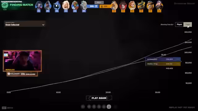 04:50:06Ein Match im Spiel Deadlock wird begonnen. Es handelt sich um einen 4v4 Capture-the-Flag-Modus mit einer Domination-Komponente. Jedes Team versteckt seine Flagge an einem selbstgewählten Ort auf der Map. Das Gameplay umfasst das Einnehmen von Punkten, um Informationen über den Standort der gegnerischen Flagge zu erhalten. Der Streamer erklärt die Mechanik, wie die Flagge gefunden und zur eigenen Base gebracht werden muss. Eine erste Runde wird gespielt und gewonnen, jedoch bleibt das Problem bestehen, dass durch das Streamen der Standort der eigenen Flagge offengelegt wird.