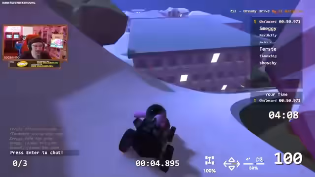03:47:04Es wird über eine starke Abkürzung beim Seifenkistenrennen gesprochen und festgestellt, dass einige Mitspieler fehlen. Es wird humorvoll kommentiert, dass der Streamer selbst ja gerade da sei, um das auszugleichen. Eine besonders saubere Fahrt durch die Halfpipe wird gelobt, gefolgt von Schwierigkeiten mit der Geschwindigkeit und seitlichem Wind. Der Streamer findet die Strecke, hat aber dennoch Probleme. Es wird ein Stream-Experiment erwähnt, das so lange dauern soll, bis der Streamer verliert. Die perfekte Fahrt durch die Halfpipe wird erneut betont, ebenso wie Probleme mit einem blauen Ring und einer Glasscheibe am Ende der Strecke. Es wird über eine missglückte Überfahrt der Halfpipe und eine verpasste bessere Zeit gejammert. Der Streamer kündigt an, dass er die nächste Map gewinnen wird, egal was kommt, und fährt rechts lang. Die City-Strecken werden als gut befunden, und der Streamer glaubt, instinktiv besser zu fahren als mit Nachdenken.