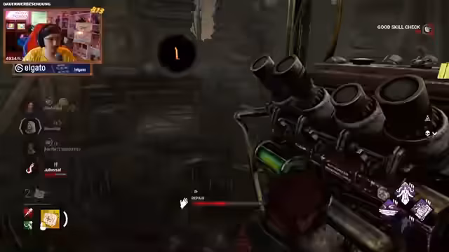 01:14:34Der Fokus liegt auf aufregenden Verfolgungsjagden. Der Streamer kommuniziert ständig mit seinen Teammitgliedern, um ihre Positionen zu koordinieren und gemeinsame Gen-Sicherungen zu ermöglichen. Es kommt zu kritischen Momenten, in denen er sich in einer festen Blockade (Dead Zone) befindet und auf Rettung angewiesen ist. Er nutzt Fähigkeiten wie Dead Hard, um Angriffe auszuweichen, und muss trotz Verletzung und Vision des Killers versuchen, seine Gen-Sicherungen abzuschließen. Die Strategie ist oft ein taktisches Manövrieren, um den Killer zu verwirren und Zeit für Gen-Reparaturen zu gewinnen.