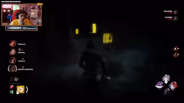 00:07:16Das Spiel beginnt mit dem Killer The Ghoul. Die Mitspielerinnen bemerken früh seine gefährlichen Perks wie Blood Favour und Full of the Hunt. Die Runde gestaltet sich schwierig, da die Killerin aktiv jagt und die Überlebenden sich an den Generatoren versuchen. Es kommt zu intensiven Chases und gefährlichen Situationen, in denen die Streamerin und ihre Mitspielerinnen knapp dem Tod entgehen. Trotz des Drucks gelingt es ihnen, einen Generator fertigzustellen und die Eliminierung abzuwenden, auch wenn ein Mitspieler in der Runde stirbt.