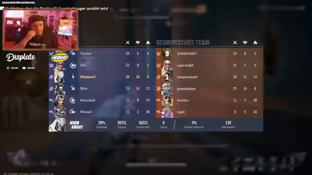 04:23:48Es wird vermutet, dass das gegnerische Team stream sniped, da die Gegner sehr schnell auf die Aktionen der Streamer reagierten. Dies wird damit begründet, dass die Gegner sich aus der Overwatch-Szene zu kennen schienen und über bekannte Overwatch-Themen sprachen. Die Spieler diskutieren über die Taktiken der Gegner, insbesondere den Star-Lord als ständige Bedrohung an der Flanke, und überlegen, wie sie diesem mit Helden wie Winter Soldier oder Moon Knight effektiv begegnen können.