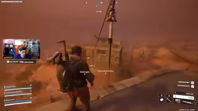 07:29:42Die Spieler diskutieren die Nachteile eines gemeinsamen Chats in Squad-Streams, insbesondere wenn es um Giveaways geht, die den Chat überfluten. Sie sind sich einig, dass ein gemeinsamer Chat störend sein kann, es sei denn, man spielt dauerhaft aktiv zusammen. Es wird erwähnt, dass Dhalucard in der Vergangenheit bei 'Rust Rivals' nett war, was oft mit Wetten oder verlorenen Spielen in Verbindung gebracht wird. Die Spieler bereiten sich auf den nächsten Kampf vor und planen, zum Bahnhof zurückzukehren, um einen Geheimvorrat zu öffnen. Sie bemerken eine rote Drohne und einen Airdrop, was auf feindliche Aktivität hindeutet. Die Spieler sind sich der Spawn-Punkte bewusst und versuchen, nicht überrascht zu werden. Ein Spieler findet einen Bauplan für ein Barrikaden-Set, was als 'geil' empfunden wird, da es nur eine mechanische Komponente zum Bau kostet. Eine Quest im Lagerhaus Yang Su wird besprochen, und die Spieler suchen nach einem Kommunikations-Terminal im Olivenhain. Sie werden von Feinden beschossen und müssen sich in Deckung bringen, wobei sie feststellen, dass sie kein 'Arschcover' haben.