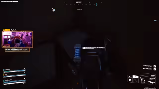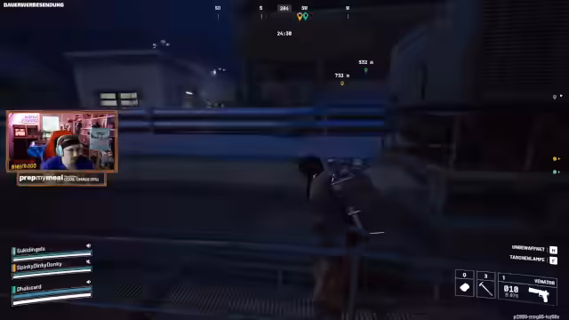 09:30:02Die Gruppe plant, die Quest im Lagerhaus erneut zu starten und durch den Tunnel zurückzukehren, wo noch Loot vermutet wird. Währenddessen versucht ein Spieler, seine Essensbestellung abzuschließen. Es kommt zu einem Kampf, bei dem ein Gegner eliminiert wird. Die Spieler diskutieren über die Verwendung von Salz beim Essen und scherzen über einen möglichen Salzmangel. Sie nähern sich dem Lagerhaus, das von Bots bewacht wird, und bereiten sich auf den Kampf vor. Ein Spieler bemerkt, dass er das Spiel seit Jahren nicht mehr so intensiv gespielt hat, was auf die gute Spielmechanik und den Spaß zurückzuführen ist. Es kommt zu einem intensiven Feuergefecht mit mehreren Gegnern. Die Spieler koordinieren ihre Angriffe und versuchen, die Gegner zu flankieren und ihre Schilde zu zerstören. Es wird festgestellt, dass mehrere Gegner in der Nähe sind, und die Gruppe zieht sich zurück, um sich zu heilen und eine bessere Position einzunehmen.