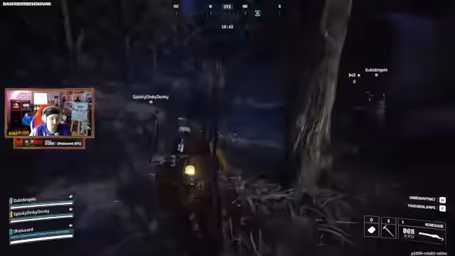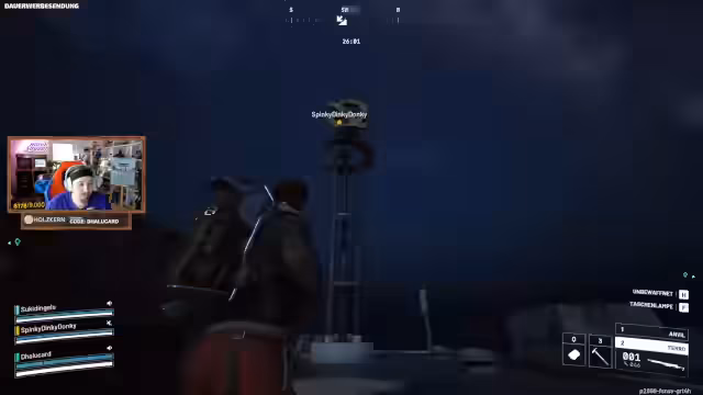 08:38:17Die Gruppe gerät erneut unter Beschuss und wird von mehreren Gegnern gejagt. Die Situation spitzt sich zu, als Dhalucard fast ausgeschaltet wird und Kay sich in einem Busch verstecken muss. Die Teammitglieder versuchen verzweifelt, sich gegenseitig zu helfen und die angreifenden Drohnen zu eliminieren, die ihre Position verraten. Trotz der Gefahr gelingt es ihnen, die Drohnen zu zerstören und sich vor den Gegnern zu verstecken. Die Spieler müssen eine schnelle Entscheidung treffen: Entweder sie stellen sich den Gegnern oder sie versuchen, ungesehen zu entkommen. Sie entscheiden sich für die Flucht, um den hart erarbeiteten Highscore von 12.000 Punkten zu sichern. Die Flucht zum Extraktionspunkt wird zu einem Wettlauf gegen die Zeit und die Gegner. In letzter Sekunde gelingt es ihnen, den Extraktionspunkt zu erreichen, jedoch nicht ohne Verluste. Dhalucard und Kay schaffen es, während Zombey ausgeschaltet wird, was zu einer gemischten Reaktion aus Erleichterung und Enttäuschung führt. Die knappe Rettung und der hohe Punktestand machen die Runde trotz des chaotischen Endes zu einem denkwürdigen Erlebnis.