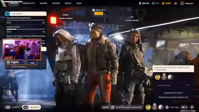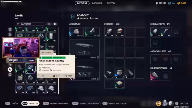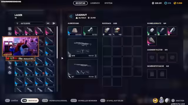 08:20:36Die Gruppe plant eine Mission im Raumhafen, um wöchentliche Ranglistenpunkte zu sammeln. Es wird eine spezielle Karte erwähnt, die die Positionen von Höhlen mit wertvollem Loot zeigt, was doppelt so viele Punkte wie üblich verspricht. Die Spieler bereiten sich darauf vor, ihr Inventar zu leeren und Waffen zu verkaufen, um Platz für die Beute zu schaffen. Es entsteht eine kurze Verwirrung über den Lagerplatz, der sich jedoch klärt. Während der Vorbereitung wird über die Suche nach spezifischen Gegenständen wie 'Kühlungsdingern' gesprochen, die in Serverräumen gefunden werden können und für Expeditionen benötigt werden. Die Teammitglieder tauschen sich über ihre Erfahrungen mit dem Looting aus und versuchen, die effizienteste Route durch den Raumhafen zu finden, um die maximale Punktzahl zu erreichen und gleichzeitig Risiken zu minimieren. Die Wichtigkeit, alle Drohnen zu looten, wird betont, da selbst kleine Drohnen zum Highscore beitragen.