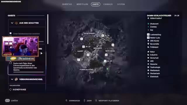 05:49:53Nach dem WoW-Thema geht es zurück zu Arc Raiders. Eine Quest am 'Siegesdamm' wird absolviert. Dabei wird die Gruppe von einem anderen Spieler angegriffen, der aber nach einem kurzen Feuergefecht besiegt wird. Die Beute wird schnell gesichert und es wird darüber gesprochen, wie man am effizientesten Loot aus einer Runde herausbekommt.