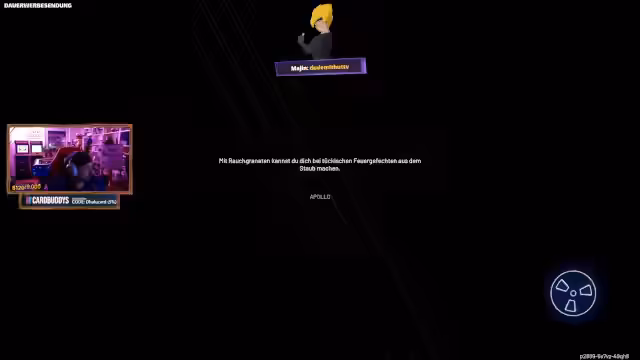 09:45:46Ein Spieler fragt nach einem Questgegenstand und sucht nach Gegnern, die sich möglicherweise zurückgezogen haben. Die Gruppe überprüft ihre Vorräte an Shield Rechargern. Ein Spieler hat noch vier Stück, während ein anderer alle seine Super Shield Charger im letzten Kampf verbraucht hat. Es wird spekuliert, wie viele Quests noch zu erledigen sind, um den Battle Pass abzuschließen. Ein Spieler wurde von einem Lieferanten angerufen, was zu einer kurzen Unterbrechung führt. Es wird scherzhaft über die Lieferung und das Trinkgeld gesprochen. Die Gruppe plant, durch einen Tunnel zurück ins Lagerhaus zu gehen, um weitere Gegner zu finden. Es wird ein kaputter Roboter erwähnt, der möglicherweise auf Gegner hinweist. Die Spieler bewegen sich leise, um nicht entdeckt zu werden, bemerken aber, dass ein Spieler über ihnen gesprochen haben könnte.