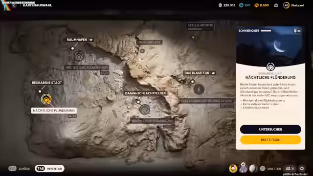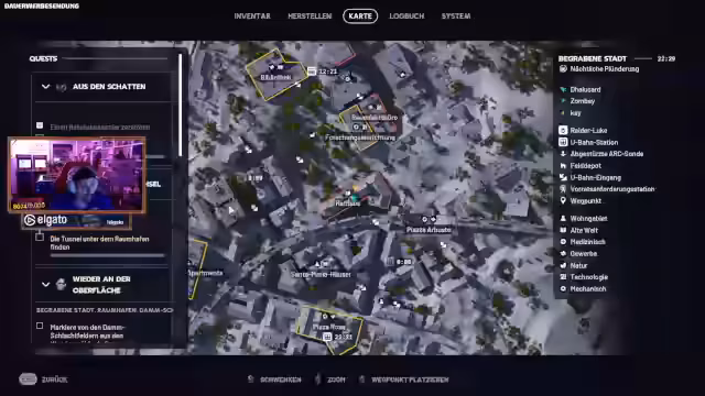 01:26:20Die Spieler stehen vor der Herausforderung, ein Gebäude mit einem Wandbild in der begrabenen Stadt zu finden. Die Quest-Beschreibung ist auf Deutsch schwer zu verstehen, und es wird angemerkt, dass die englische Version des Spiels hier Vorteile bieten würde, da man die Quest-Namen googeln könnte. Währenddessen sammeln die Spieler Ausrüstung, darunter Quietsche-Enten und Zip-Lines. Es wird eine Frustration über das Upgrade-Menü des Spiels geäußert, da es oft zu falschen Upgrades von zufälligen Waffen im Lager kommt, anstatt der gewünschten angelegten Waffe. Dies führt zu einem Verlust von Materialien und verhindert das gezielte Verbessern der bevorzugten Ausrüstung. Die Spieler diskutieren über die Effizienz des In-Game-Craftings und die Notwendigkeit, genügend Materialien für Upgrades zu haben.