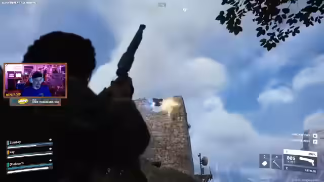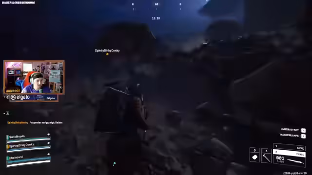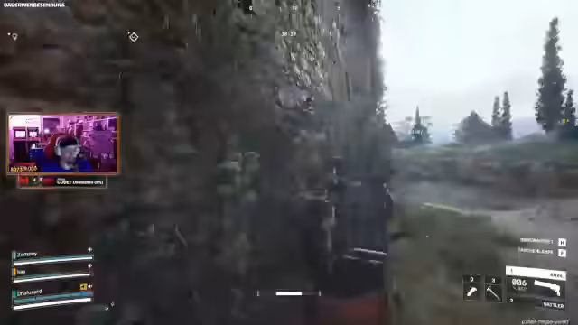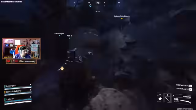 08:04:28Das Team begegnet einem Spieler, der unter dem Boden der Map scheinbar durch Wände schießen und sich unbemerkt bewegen kann. Mehrere Streamer werden aus ungewöhnlichen Positionen beschossen, obwohl der Angreifer nicht sichtbar ist. Sie vermuten, dass der Gegner einen Bug oder sogar einen Cheat ausnutzt, um ihnen Schaden zuzufügen, und diskutieren über die Absichtlichkeit dieser Aktion.