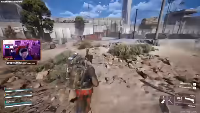 05:39:14Die Spieler entdecken einen Kanonier, den sie angreifen wollen. Eine geworfene Granate schaltet alle Argos in der Umgebung aus. Die Strategie sieht vor, das Icky an die Klappe des Kanoniers zu befestigen, während andere Drohnen mit Wolfpack-Granaten ausgeschaltet werden, um Van Ruhe zu verschaffen. Ein Bein des Kanoniers ist fast kaputt, und es wird versucht, es zu zerstören. Nach dem erfolgreichen Kampf sammeln die Spieler die Beute ein, während einer Wache hält. Plötzlich werden sie von einem anderen Team angegriffen. Ein Spieler wird getroffen, und das Team versucht, sich neu zu positionieren und einen angeschlagenen Teamkollegen zu retten. Trotz eines Defibrillators und eines Versuchs, sich zu heilen, werden die Spieler von den Gegnern überwältigt. Die Gegner hatten LMGs und waren gut ausgerüstet. Die Spieler bedauern die Niederlage, da sie den Kampf hätten gewinnen können, und planen, mit neuem Loadout weiterzuspielen. Es wird auch eine Diskussion über eine lange Questreihe auf dem Damm und die Reaktionen eines Moderators auf eine 'Wann WoW?'-Nachricht geführt, die als Spam eingestuft wird.