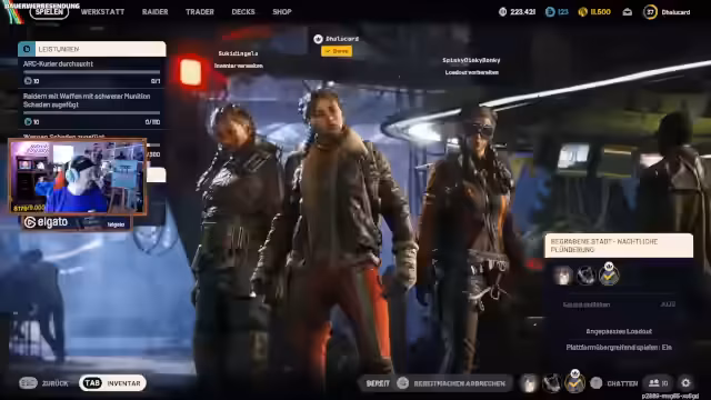 00:10:21Im Anschluss wird die Auswahl der Skins inARC Raiders kritisiert. Die Streamer äußern ihre Unzufriedenheit mit den verfügbaren Optionen und finden lediglich den Standard-Skin mit Cowboy-Hut als akzeptabel. Die Aufmerksamkeit verlagert sich dann auf das Vorbereiten von Quests, insbesondere im Zusammenhang mit den wöchentlichen Herausforderungen. Die Mechanik zur Markierung von Gebäuden aus der begrabenen Stadt wird erklärt. Die Streamer planen, diese Quest gemeinsam zu bewältigen und diskutieren die nötige Vorbereitung wie die Mitnahme einer Buletta für den Zugang zum Waffenlager.