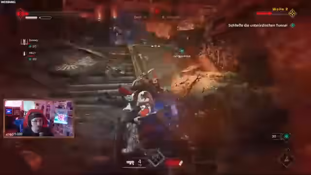 02:39:19Die Spieler setzen ihren Kampf im Horde-Modus fort und erleben zunehmend schwierigere Gegner und Wellen. Der Streamer wechselt Waffen und experimentiert mit verschiedenen Klassenfähigkeiten, um effektiver gegen die Gegner vorgehen zu können. Er diskutiert mit seinem Mitspielern über die Effektivität bestimmter Waffen und Fähigkeiten gegen verschiedene Gegnertypen.
