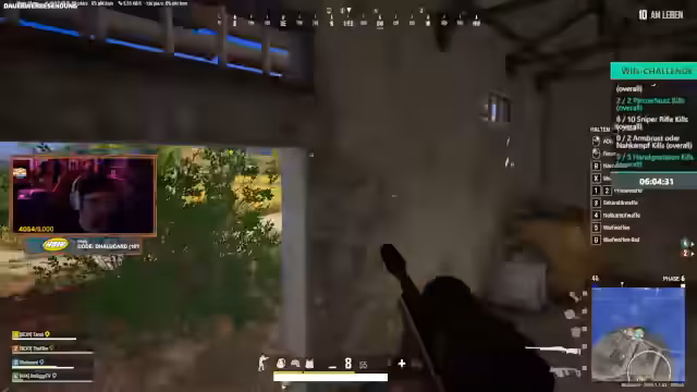 05:23:37Das Team hat eine erfolgreiche PUBG Runde mit 16 Kills und fast 2000 Schaden. Obwohl sie das Ziel, in unter fünf Stunden zu gewinnen, nicht erreicht haben, war die Runde dennoch spaßig. Der Streamer kündigt einen baldigen Stream für den nächsten Tag an, wo er solo etwas testen wird, und erwähnt geplante Spiele wie Rainbow Six, Lonely Mountain Snowriders und Deadlock.