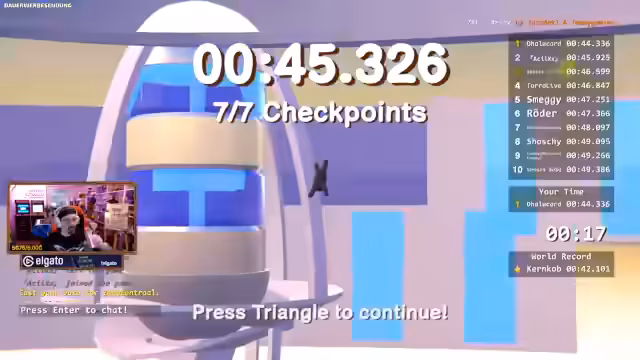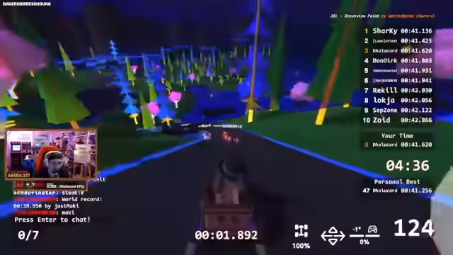 04:10:13Die Spieler analysieren ihre Sprünge und versuchen, die optimale Technik zu finden, um die Distanz zu überwinden. Ein Spieler erreicht eine Zeit von 38 Sekunden und fragt, wie man den Sprung schafft, da er aktuell noch gar nicht gelingt. Es wird diskutiert, dass man vorher schnell genug sein muss und so weit links wie möglich springen sollte, oder dort, wo die gelben Punkte die Optimallinie markieren. Ein Spieler bemerkt, dass er 10 km/h mehr hat als ein anderer und fragt sich, warum. Die Diskussionen drehen sich um die Armhaltung beim Einsprung und ob man die Arme nach oben nehmen sollte. Die Spieler sind frustriert über Geschwindigkeitsverluste und fragen sich, woher der Speed in bestimmten Abschnitten kommt. Es wird vermutet, dass die Konzentration nachlässt und dass die Map anspruchsvoll ist. Ein Spieler findet einen "Stripclub" auf der Strecke, was für Heiterkeit sorgt.