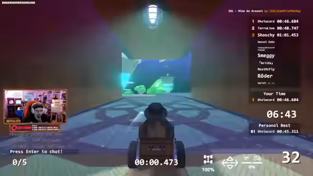 04:56:50Ein Spieler erwähnt, dass er im November Asics für WoW vorgeschlagen hat, aber Hardcore-WoW keinen Spaß macht und den Stream killt, wenn man kein WoW-Main ist. Das Thema WoW kommt auf dieser Map wieder auf, was für Verwirrung sorgt, da zuvor von Minecraft die Rede war. Es wird erklärt, dass Minecraft wegen der Zahlen gespielt wird, aber die Spieler sind sich einig, dass die Zahlen egal sind. Ein Spieler erreicht eine "Banger Zeit" und ist kurz vor dem Ziel gestorben. Die Spieler sind frustriert über die Schwierigkeit der Map und ihre mangelnden Fortschritte. Ein Spieler bemerkt, dass er seit Jahren nicht mehr fröhlich war und vergleicht sich mit Alfred J. Quack. Die Spieler versuchen, sich gegenseitig zu motivieren, aber die Frustration über die einfachen Kurven und das Scheitern kurz vor dem Ziel bleibt bestehen. Ein Spieler fragt sich, was er eigentlich kann, außer zu atmen, und ein anderer bemerkt, dass seine Brille voller Fingerabdrücke ist.