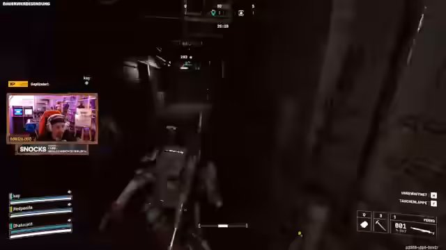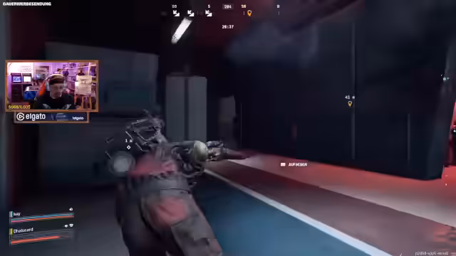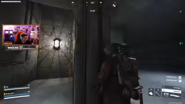 09:02:53Nach einer intensiven Runde entscheiden sich die Spieler für eine schnelle Runde auf einer neuen Map, bevor das Bunker-Event um 20 Uhr beginnt. Es wird über die Schwierigkeiten des Bunker-Events gesprochen, da viele Spieler den Stimmverzerrer verwenden und sich alle gleich anhören. Es kommt zu weiteren PvP-Begegnungen, bei denen die Spieler mit "Kackwaffen" gegen gut ausgerüstete Gegner kämpfen müssen. Die Venator 4 wird erneut als problematisch empfunden, da sie Headshots ermöglicht, die Shield- und normale HP gleichzeitig reduzieren. Die Spieler versuchen, die Antennen für das Bunker-Event zu aktivieren, treffen aber auf viele schießwütige Gegner. Es wird eine PvE-Gang gebildet, um das Event gemeinsam zu meistern, aber ein "Imposter" sabotiert die Bemühungen, indem er die Terminals zu früh aktiviert.